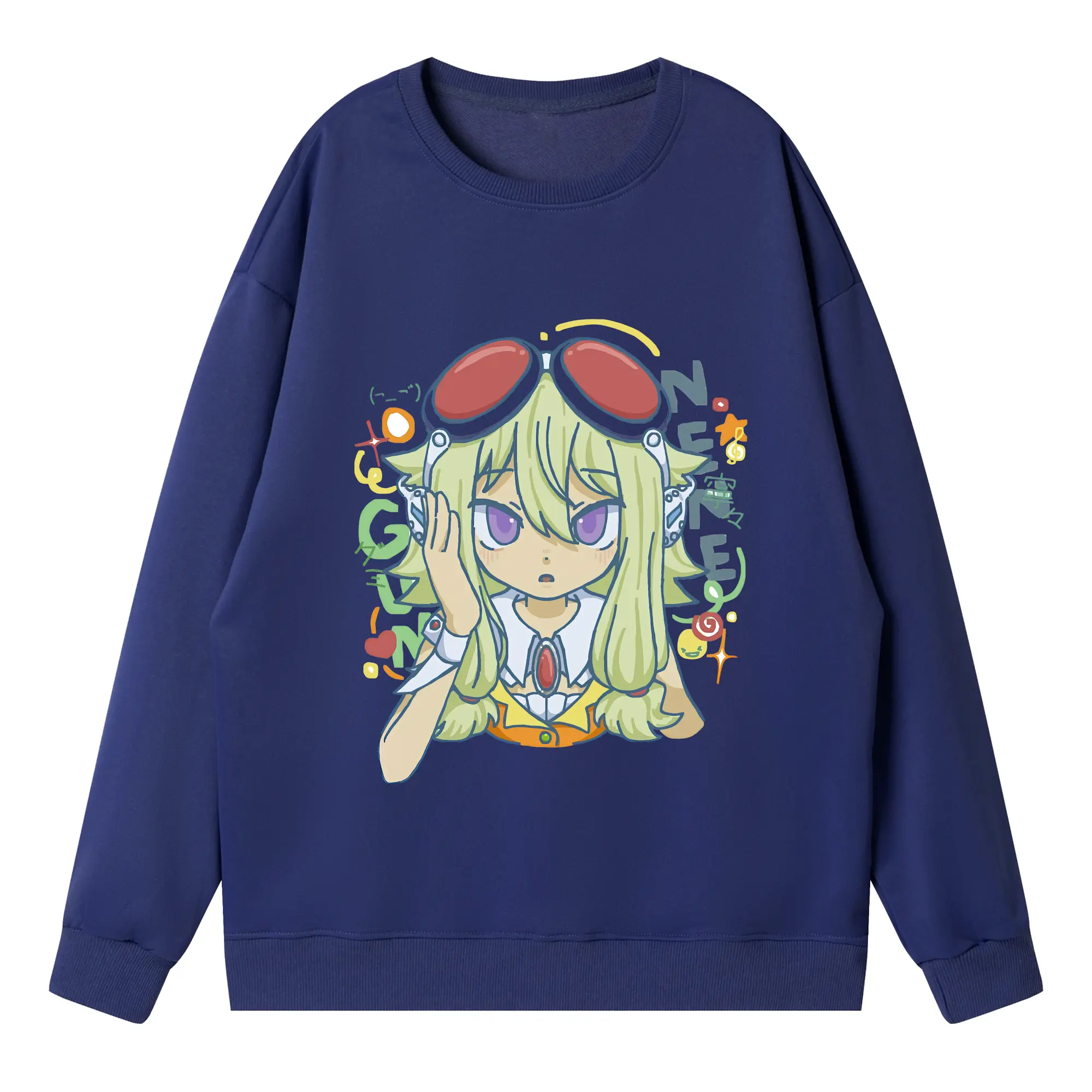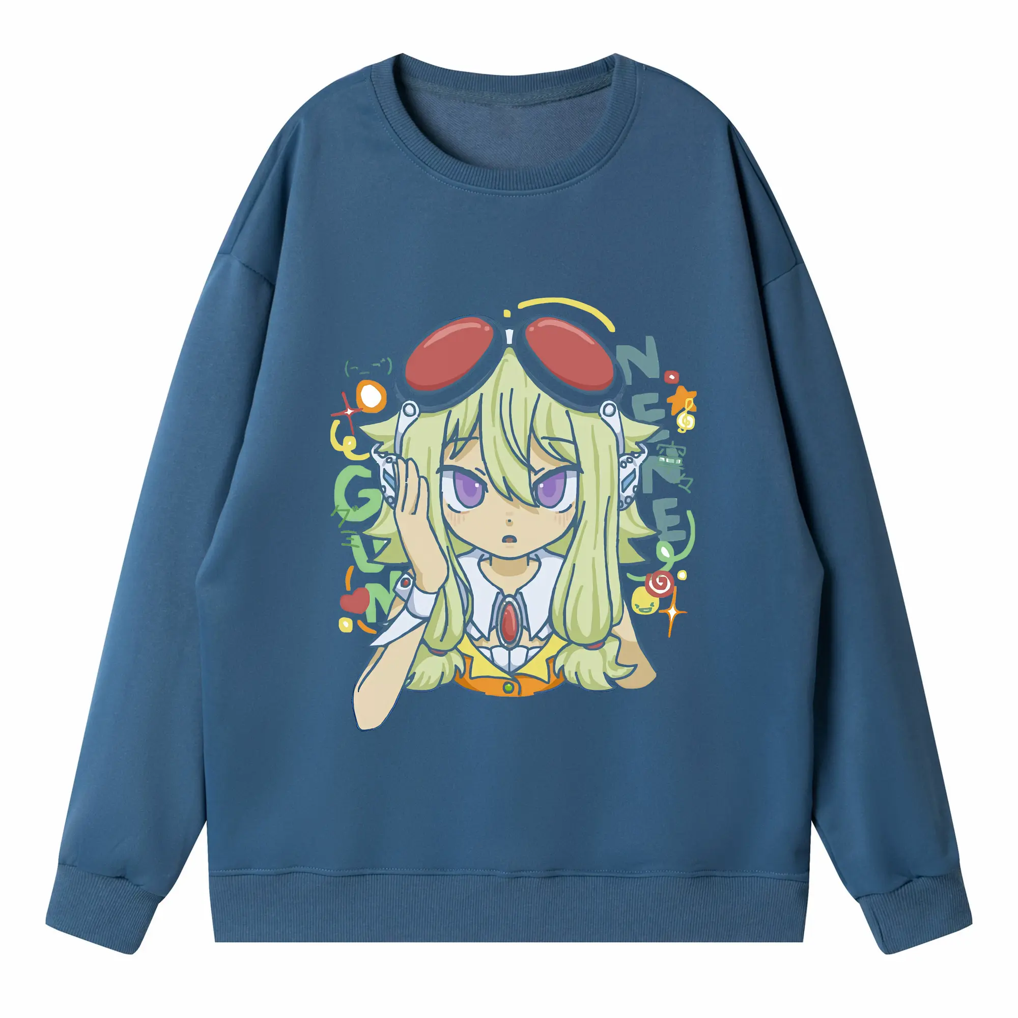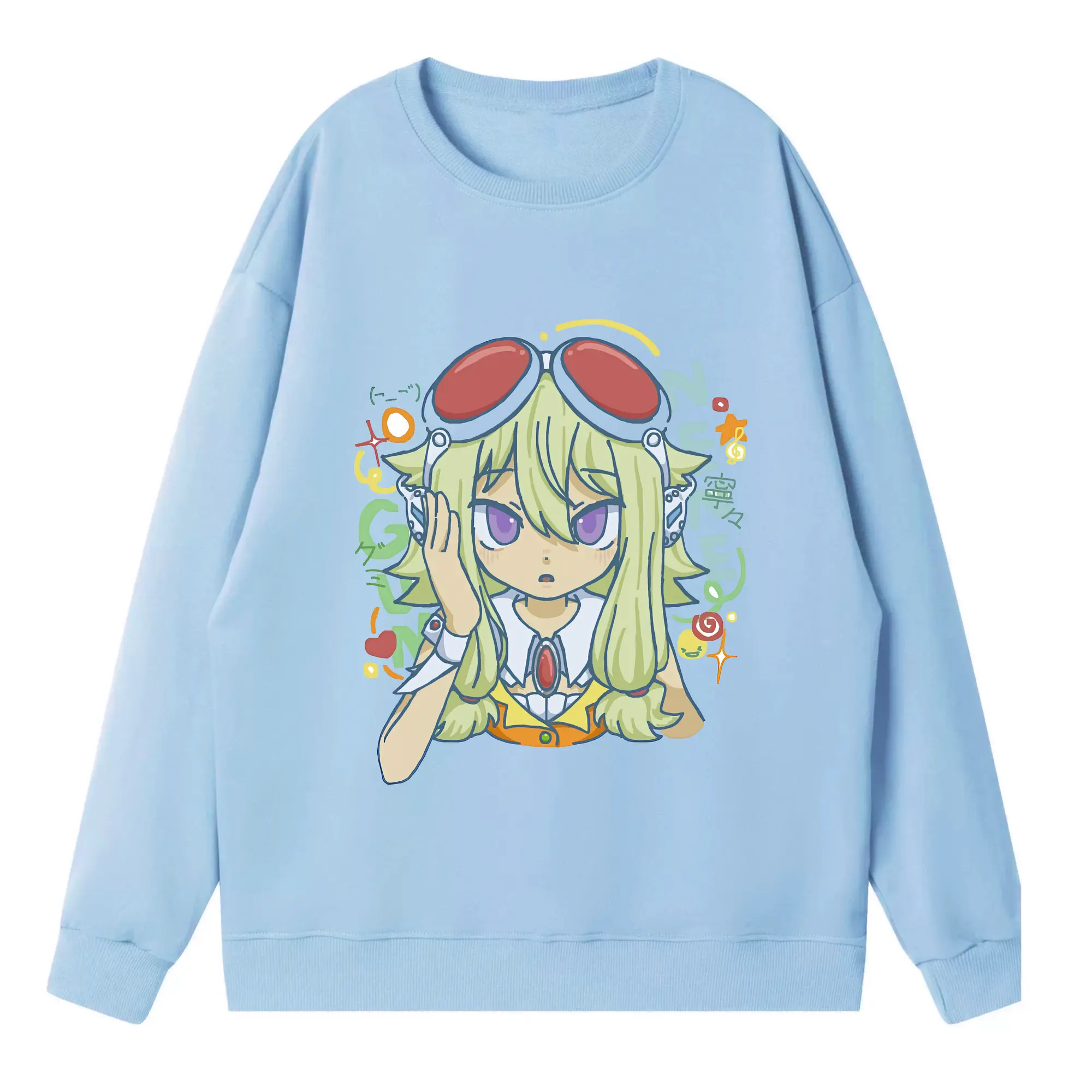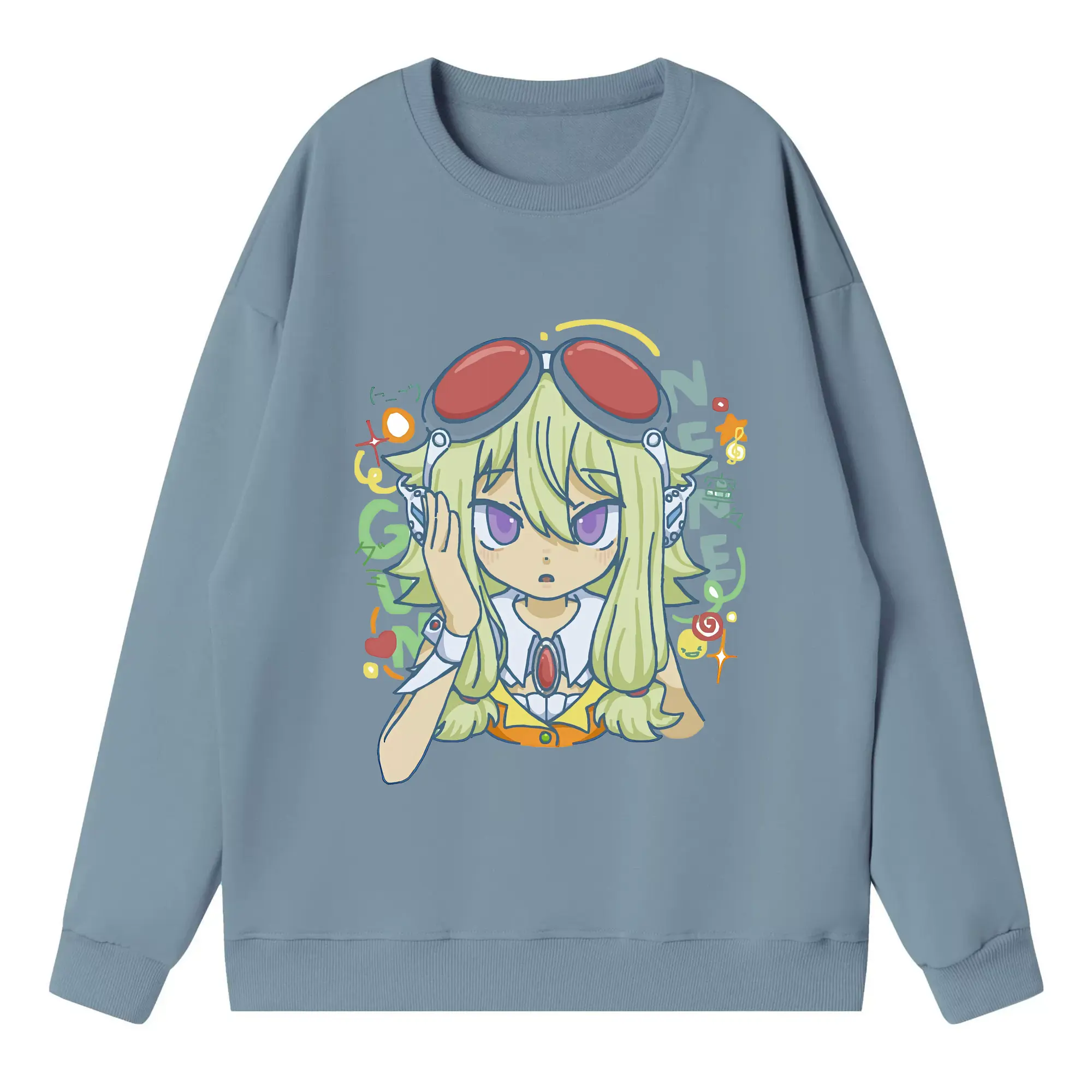 VOCALOID GUMI かわいいデフォルメ オリジナルデザイン - 薄手 クルーネック スウェット 裏毛260g · ポリエステル 春秋向け カジュアル 男女兼用 · トレーナー デイリー スポーツ 散歩に最適