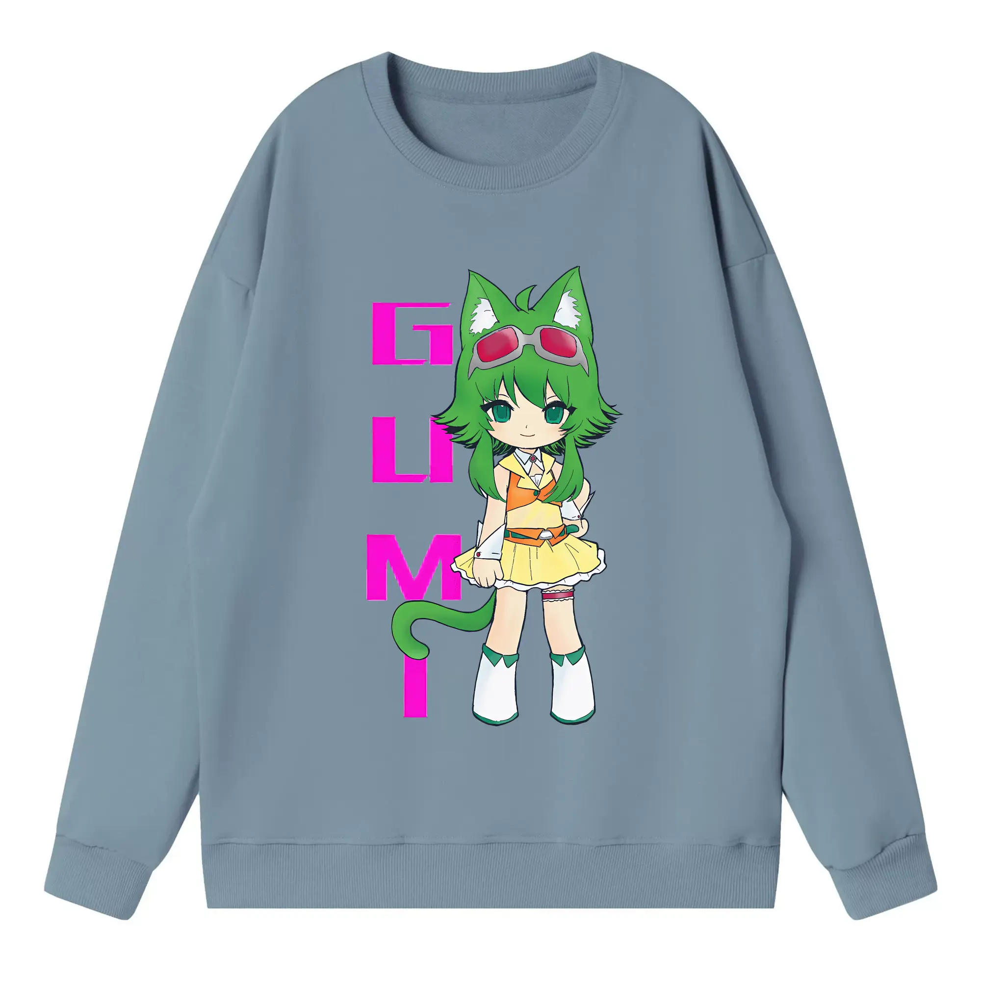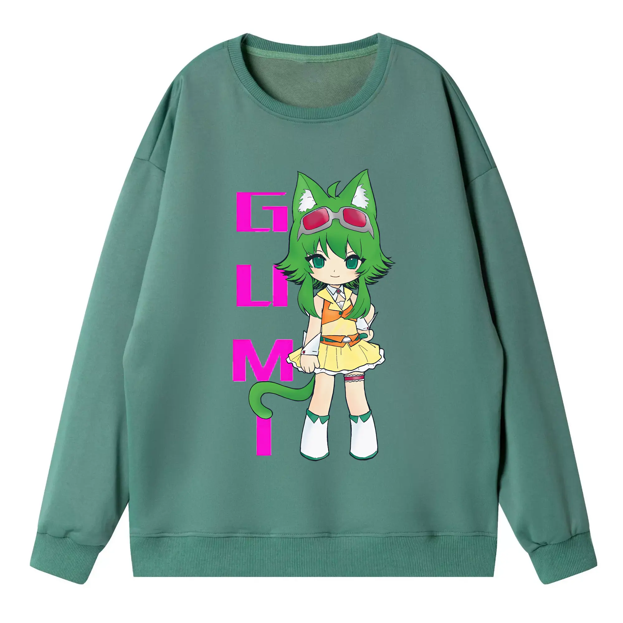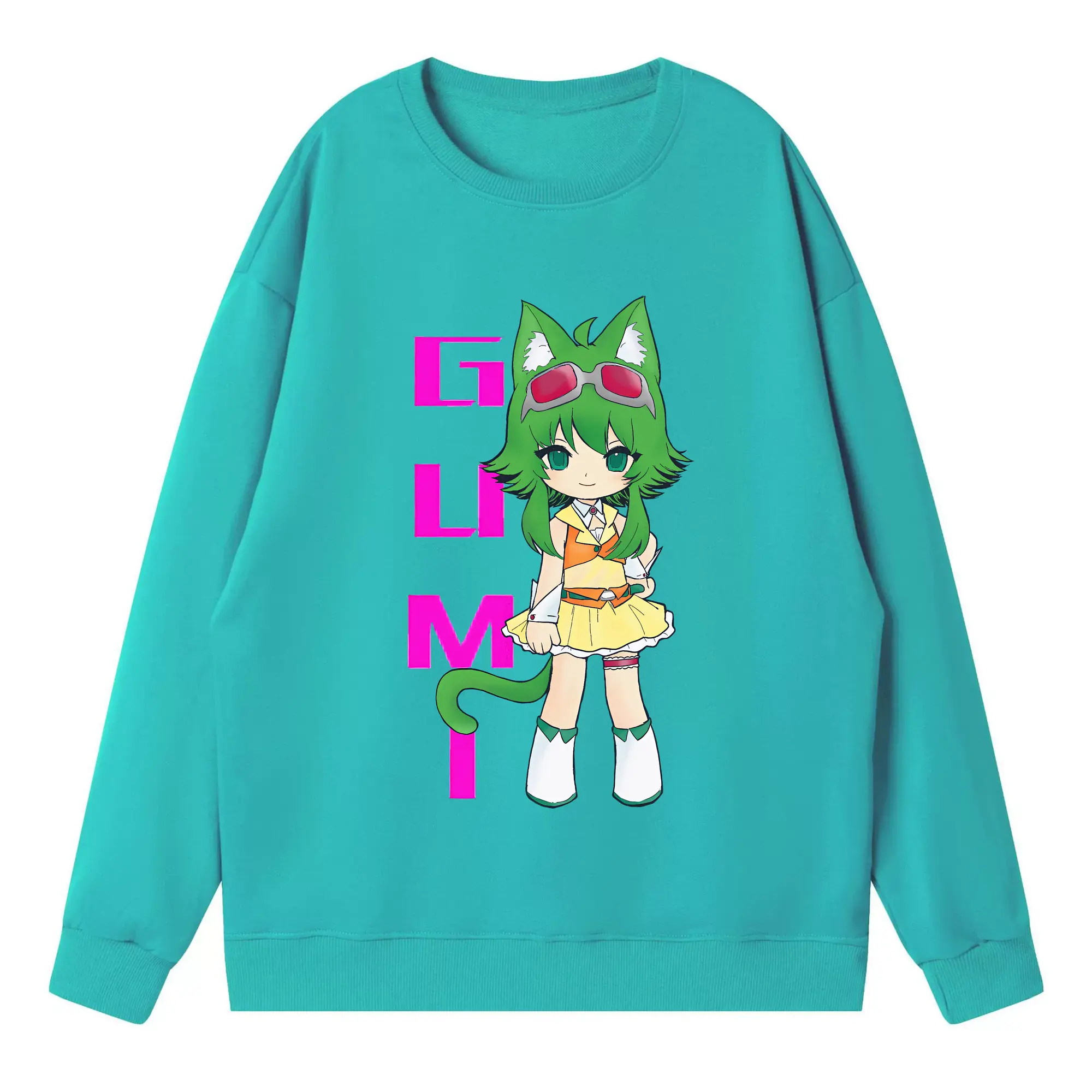 VOCALOID GUMI かわいいデフォルメ オリジナルデザイン - 薄手 クルーネック スウェット 裏毛260g · ポリエステル 春秋向け カジュアル 男女兼用 · トレーナー デイリー スポーツ 散歩に最適