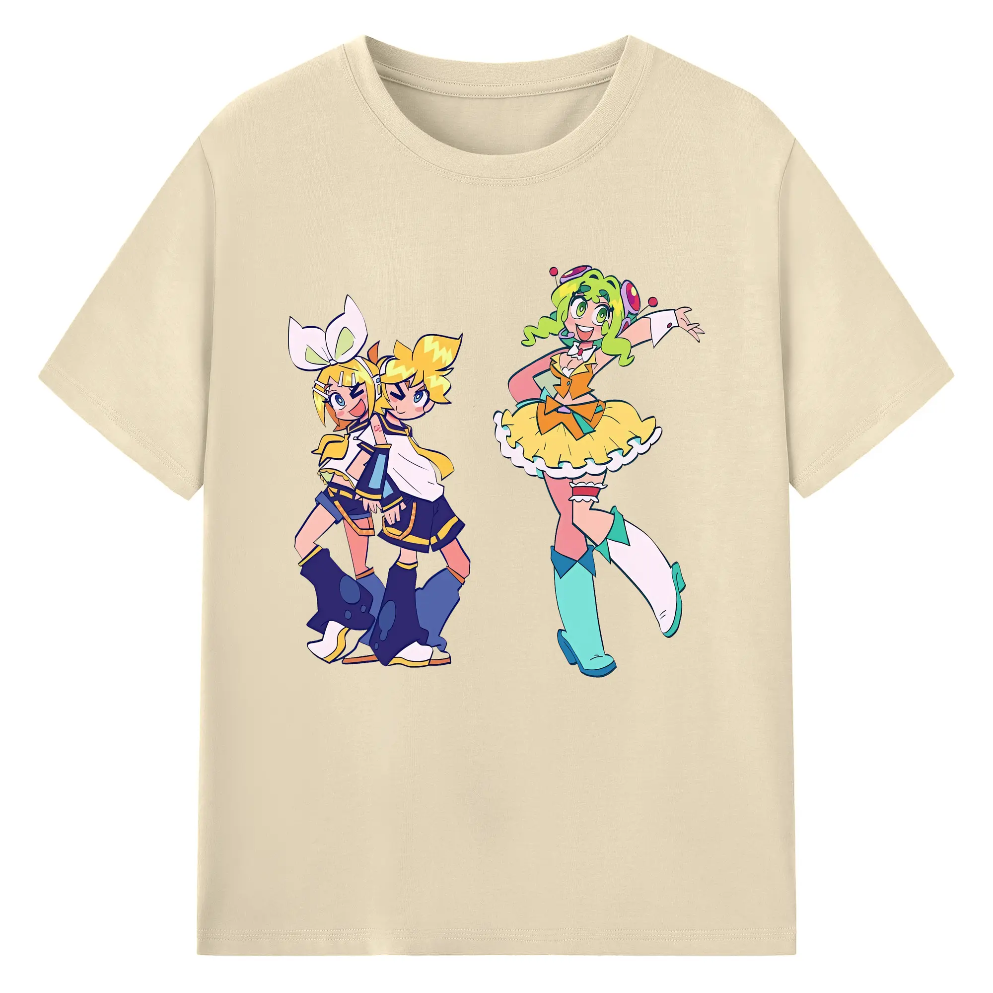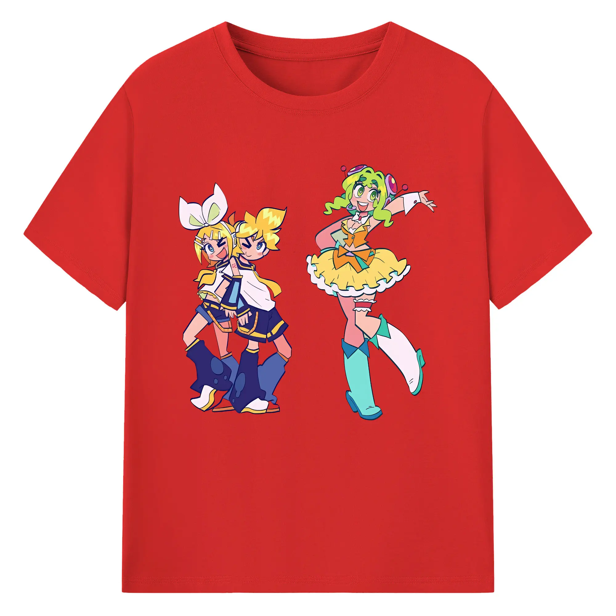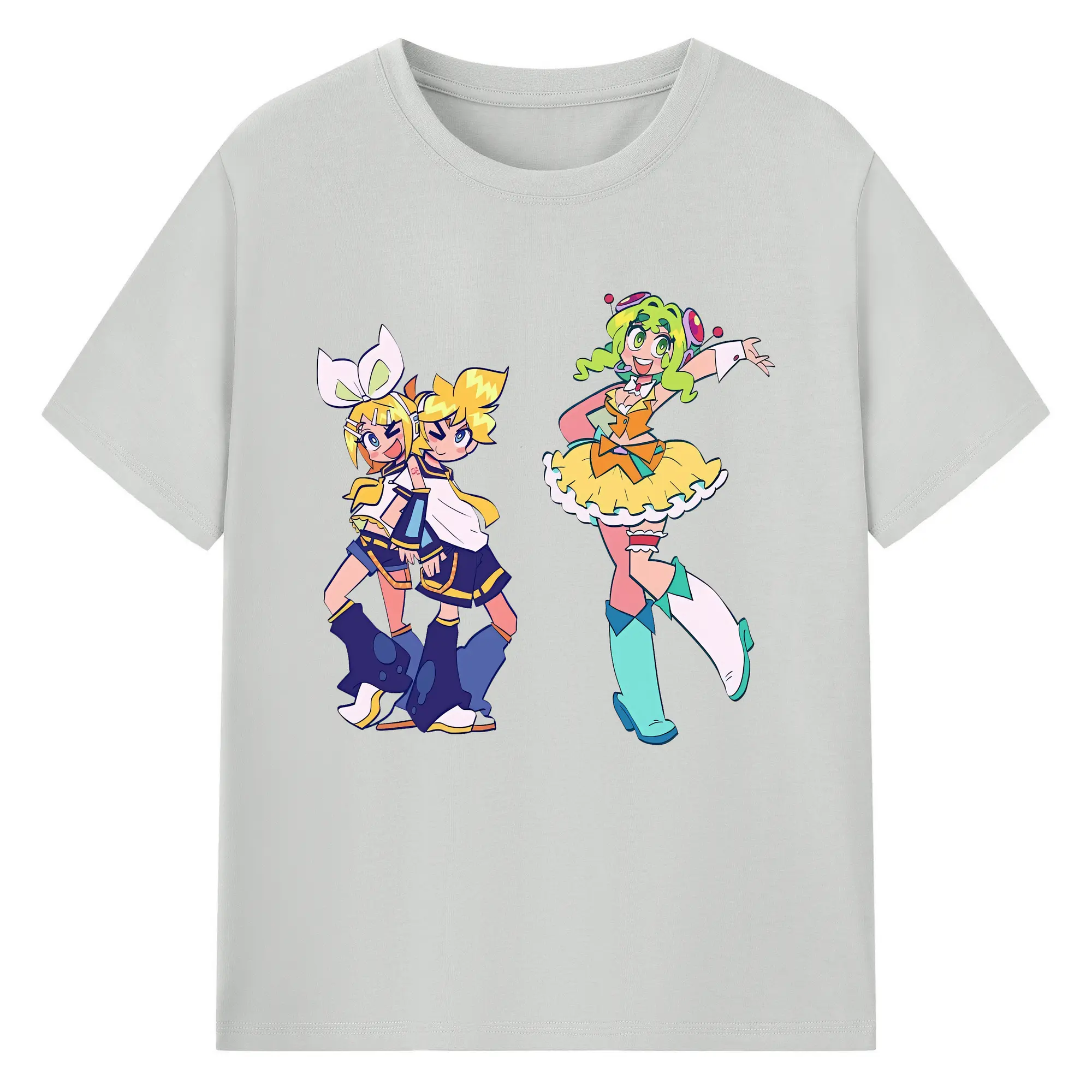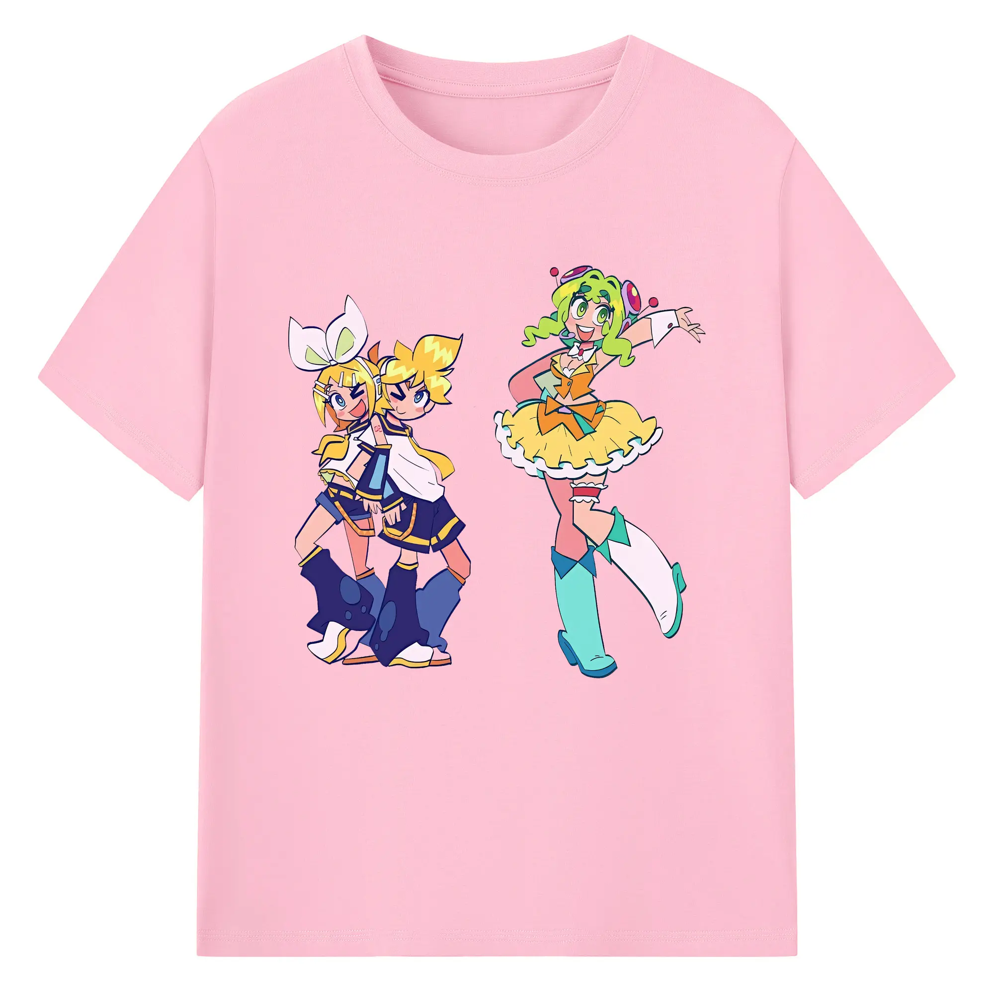 重音テト ハート キャラクター集合 かわいい オリジナルデザイン - 綿100% 半袖Tシャツ ・ フロントプリント ・ 快適 通気性 ・ 日常使い 散歩 スポーツ用
